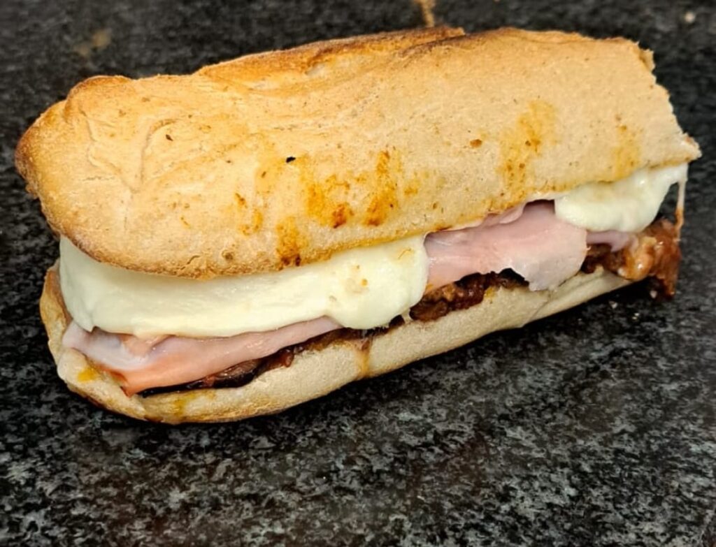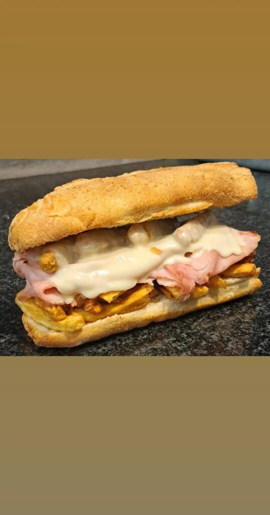 hamburger, cotto parmacotto, provola, patatine, parmigiana di melanzane bianca