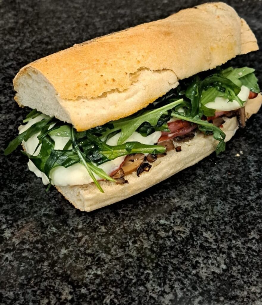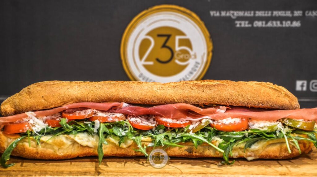porchetta di Ariccia, provola, rucola, melanzane alla griglia